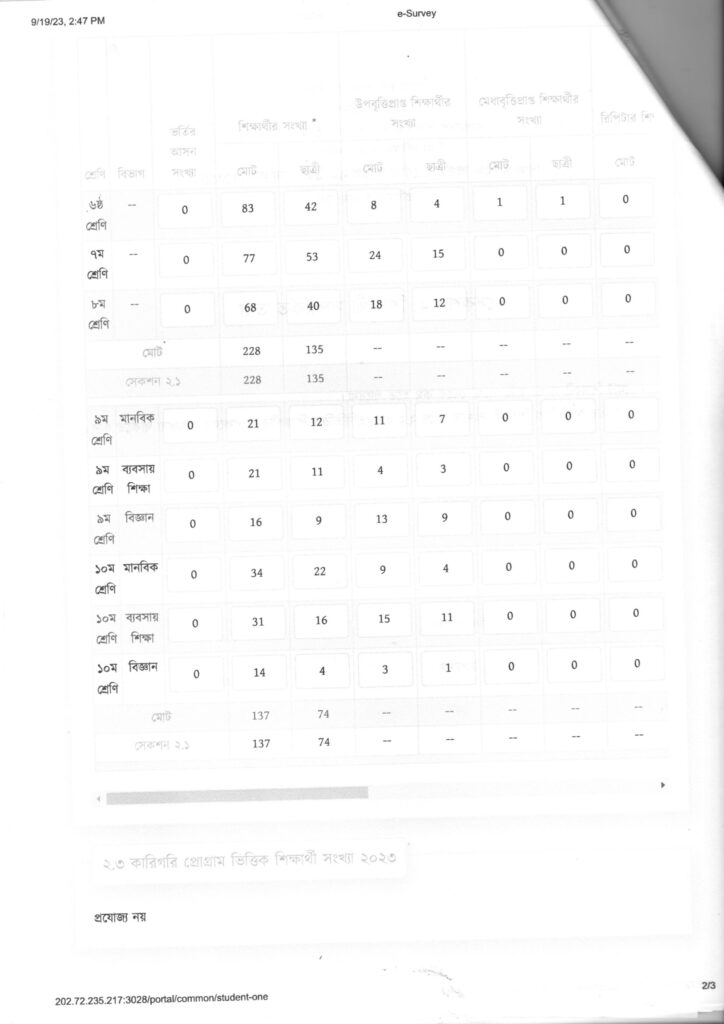 ছাত্র-ছাত্রীদের তথ্য – ২০২৩